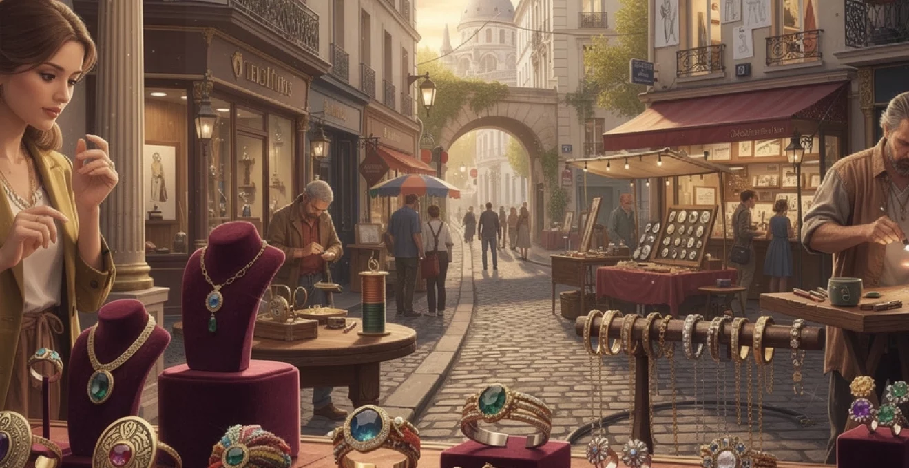 The Marché aux Puces de Saint-Ouen, just north of Paris, is one of the world’s largest flea markets and a treasure trove for antique jewelry. Within its maze of covered markets—Paul Bert Serpette, Vernaison, Biron—you’ll find dealers who specialise exclusively in estate pieces, from Belle Époque tiaras to Art Deco engagement rings. Many vendors have backgrounds in gemology or art history and can provide provenance details, hallmark interpretations, and restoration histories. If you’re searching for antique artisan jewelry with character and documented origins, this is where to start.